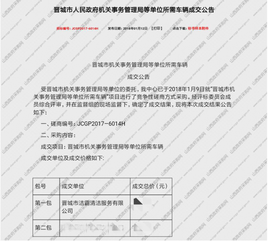 都說新年新氣象,果真是如此啊。山西潔霸在2018年的第一個月,就雙喜臨門,迎來了新年開門紅:接連在晉城市人民政府機(jī)關(guān)事務(wù)管理局等單位所需車輛項(xiàng)目和沁水縣綜合展示館保安、保潔服務(wù)采購項(xiàng)目中成功中標(biāo)。具體公告如下: