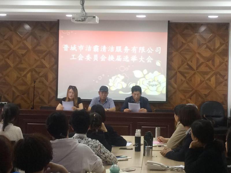 會議首先審議通過了晉城市潔霸清潔服務有限公司工會委員會第二次會員代表大會換屆選舉辦法,并選舉產(chǎn)生了新一屆的工會委員會主席及工會委員會委員。