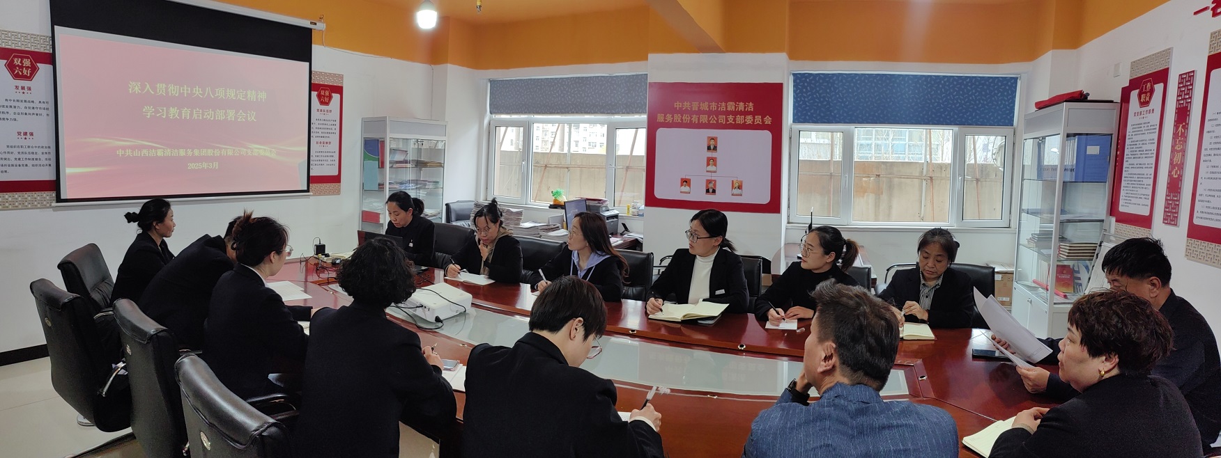 近日,山西潔霸清潔服務集團股份有限公司黨支部召開專題會議,對公司開展深入貫徹中央八項規(guī)定精神學習教育進行部署。支部書記程晉軍主持會議并講話。