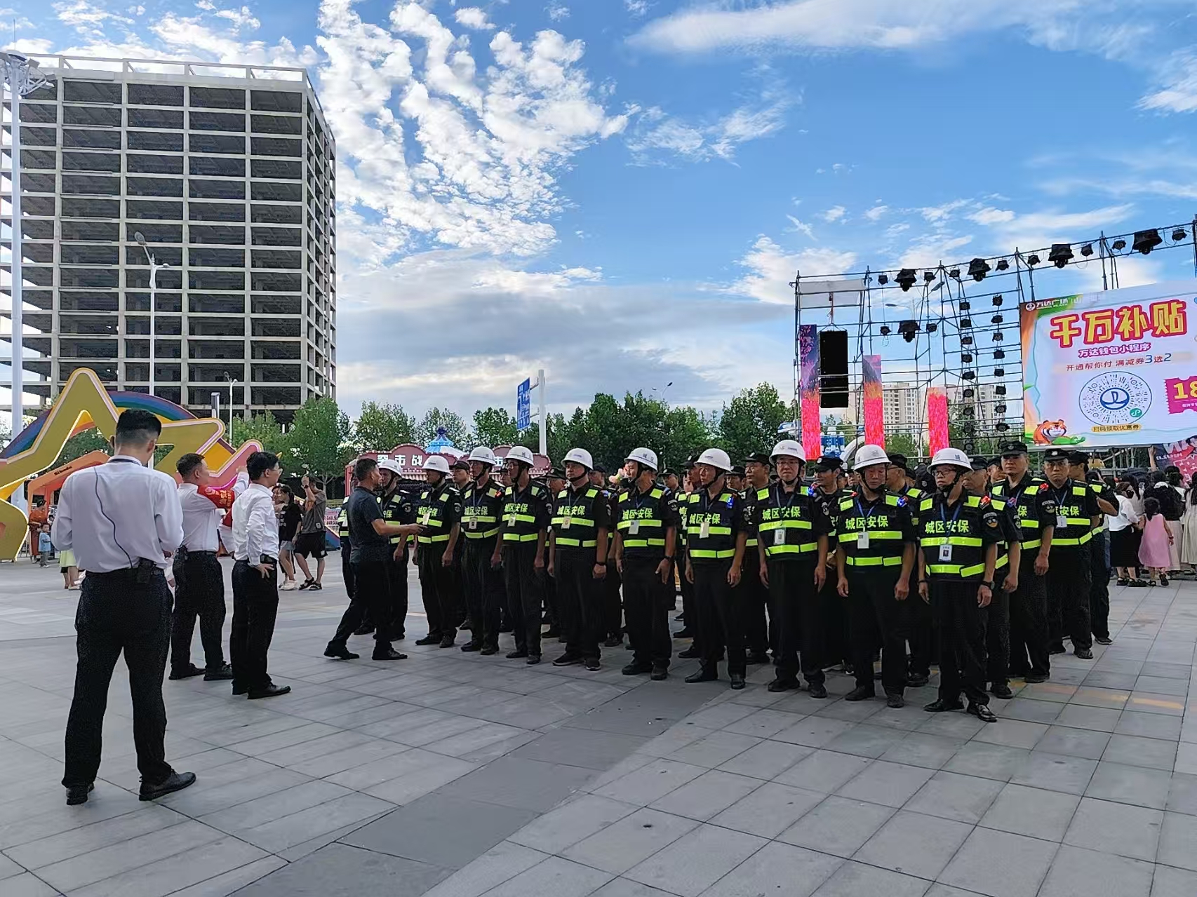 活動期間,城區(qū)保安人員按照既定方案,每天晚上6點到崗到位,配合公安、消防等部門做好秩序維護、交通疏導(dǎo)及服務(wù)保障等工作。出入口崗位的保安負(fù)責(zé)引導(dǎo)群眾有序進(jìn)出,舞臺周邊的保安重點維護觀眾秩序,防止擁擠、踩踏等危險情況發(fā)生。盡管每天晚上工作時間長達(dá)6小時,他們時刻保持警惕,沒有絲毫放松,F(xiàn)場人流量一度突破萬人次,但執(zhí)勤保安始終用規(guī)范的動作、耐心的態(tài)度引導(dǎo)人流,以嚴(yán)謹(jǐn)?shù)墓ぷ髯黠L(fēng)和飽滿的精神狀態(tài)為活動保駕護航。